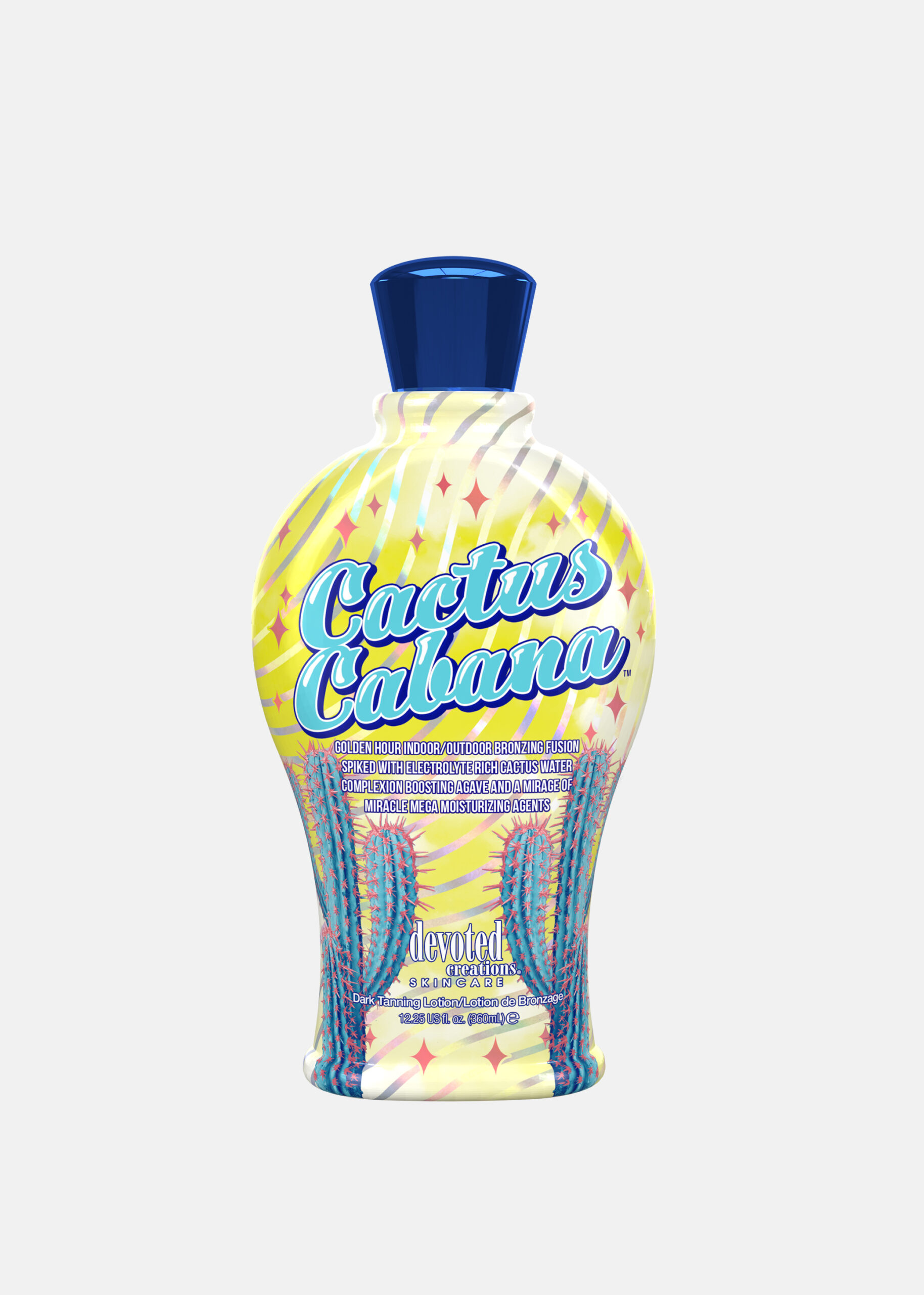 Lehne dich zurück, entspanne dich und träume von einer fantastischen Wüstenlandschaft – mit Cactus Cabana™! Diese Bräunungsformel ist vollgepackt mit streifen- und fleckenfreien Bronzern, für schnelle Ergebnisse, zur Innen- und Außenanwendung. Als Oase aus hautperfektionierenden Zusätzen, Teint-Boostern und mega-feuchtigkeitsspendenden Lotionen sorgt Cactus Cabana™ für eine perfekt getönte Haut, von Sonnenaufgang bis Sonnenuntergang. Wenn du dich nach einer goldenen Bräune sehnst, ist Cactus Cabana™ die Lösung!