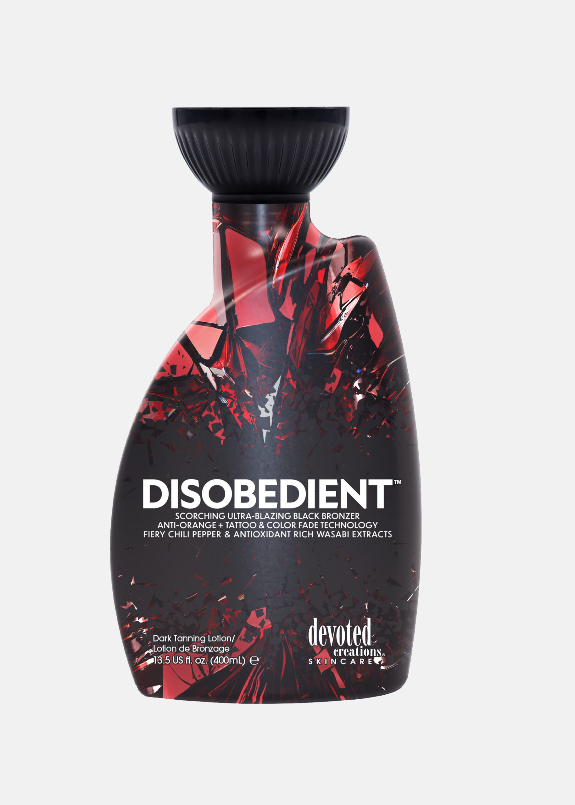Mache dich bereit, die Bräune mit Disobedient™ zu entfachen ! Dieser dreifach-brennende, schwarze Bronzer verwandelt deine Bräunungsroutine in ein loderndes Inferno! Disobedient™ trotzt allen Grenzen und liefert eine geballte Ladung der drastischsten, tiefsten und dunkelsten Ergebnissen, die man sich vorstellen kann! Diese rebellische Formel ist ein Außenseiter in der Welt der Bräunung, vollgepackt mit revolutionären Inhaltsstoffen wie Chili-Pfeffer und Wasabi-Extrakten, um deine Leuchtkraft zu entfachen, während Kurkuma und Niacinamid den Kampf gegen das Erscheinungsbild von Unreinheiten auf sich nehmen. Mit einer Formel, so innovativ wie intensiv. Wenn Disobedient™ deine Haut berührt, wirst Du die Hitzewelle spüren und dich auf den Weg zu einer verführerischen, feurig heißen Farbe vom heißesten Tingle auf dem Markt begeben. Es ist an der Zeit, sich gegen das Gewöhnliche zu wehren, das Chaos zu umarmen und deine Haut mit der glühenden Hitze von Disobedient™ in Flammen zu setzen!