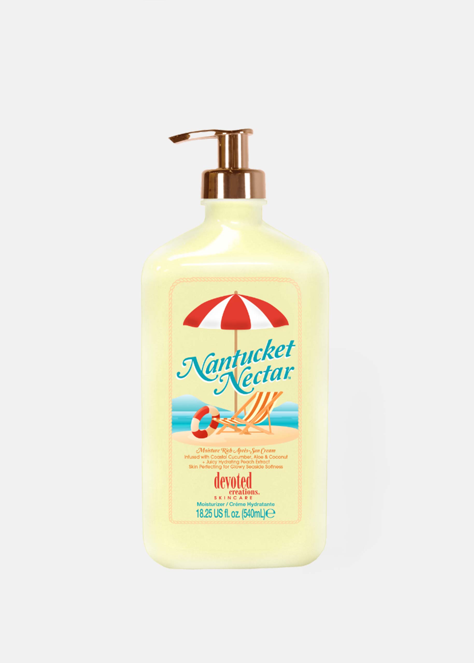 Lasse dich von der samtigen Zartheit von Nantucket Nectar™ in einen taufrischen Glanz versetzen! Diese Feuchtigkeitspflege für die Zeit nach dem Sonnenbad spendet Feuchtigkeit und verleiht sonnengeküsster Haut ein schwereloses, geschmeidiges und makelloses Finish. Die luxuriöse, kühlende Formel mit einer saftigen Mischung aus Gurke, Aloe und Kokosnuss beruhigt die Haut und macht sie fit fürs Wochenende - jeden Tag.