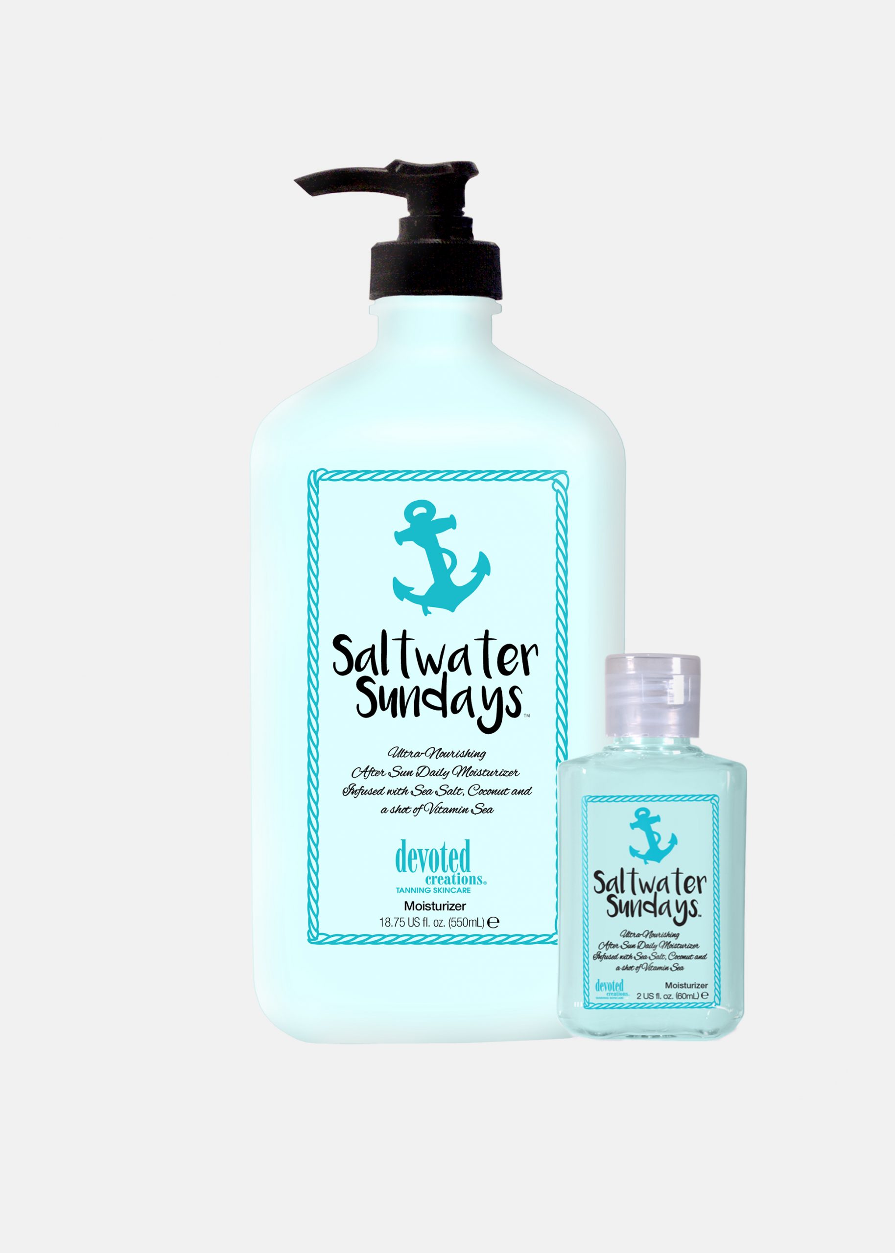 Diese regenerierende Formel ist ideal nach einem Sonnenbad oder wann immer du zusätzliche Feuchtigkeit benötigst. Saltwater Sundays™ enthält bis in die Tiefe pflegende, natürliche Inhaltsstoffe: Meersalz, Kokosöl und Gurke in einer Creme auf Aloe-Vera-Basis – für sichtbare und spürbare Ergebnisse.